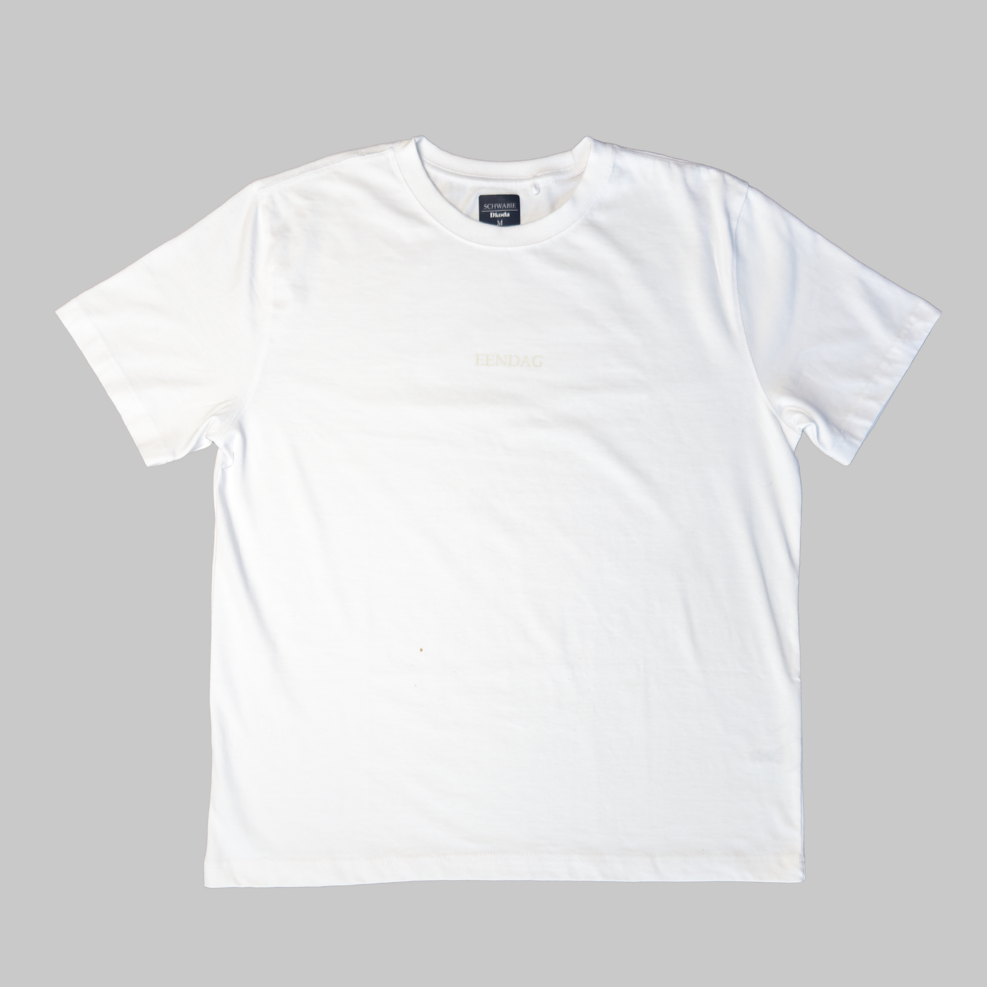 Short Sleeve fit, crafted from medium weight cotton. The T-Shirt features a ribbed crewneck collar, Schwabie "Eendag" graphic on the back.